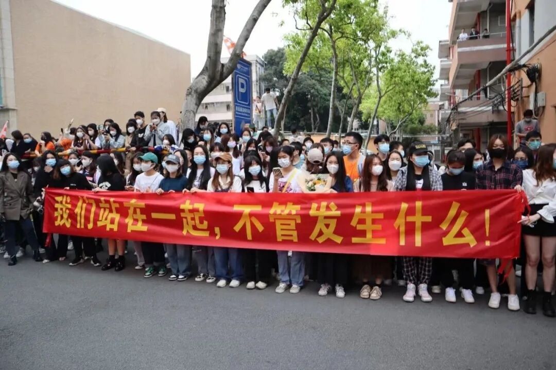 2021-2022赛季,广东宏远带着遗憾结束CBA之旅,不少自发前来的球迷拉开题字为“我们站在一起,不管发生什么!”的横幅,向抵莞的球队给予力量。