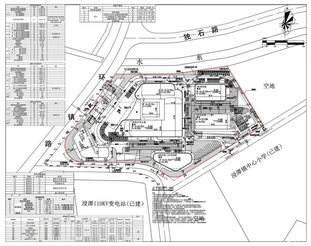 近日,清远市自然资源局发布《新建清远市清新区浸潭医院建设工程设计方案总平面批前公示》,公示显示新建的清新区浸潭医院位于清远市清新区浸潭镇独石村,总用地面积21338.09平方米,总建筑面积52554.03平方米,计容建筑面积40279.59平方米,容积率1.88,建筑基底面积8098.56平方米,建筑密度37.95%,绿地面积4392.14平方米,绿地率20.58%。
