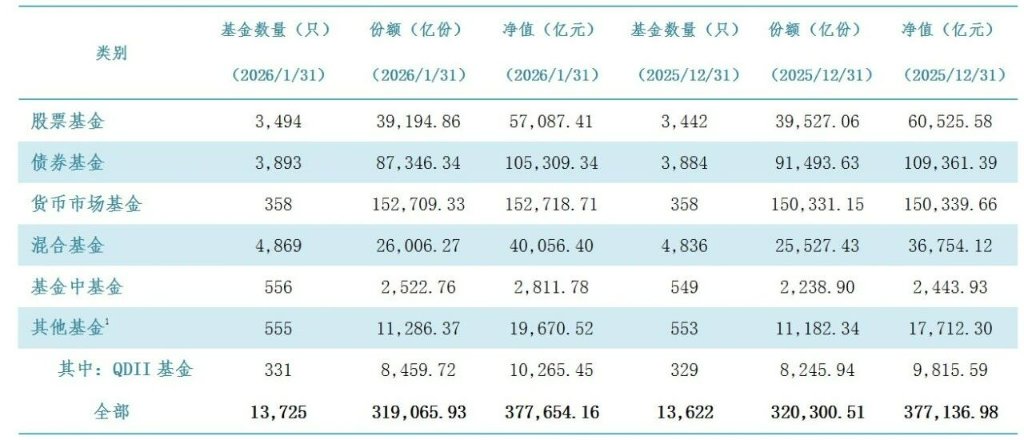 具体来看,各分类基金在2026年1月出现明显分化,尤其是股票基金和债券基金一起缩水的情况,历史上罕见。